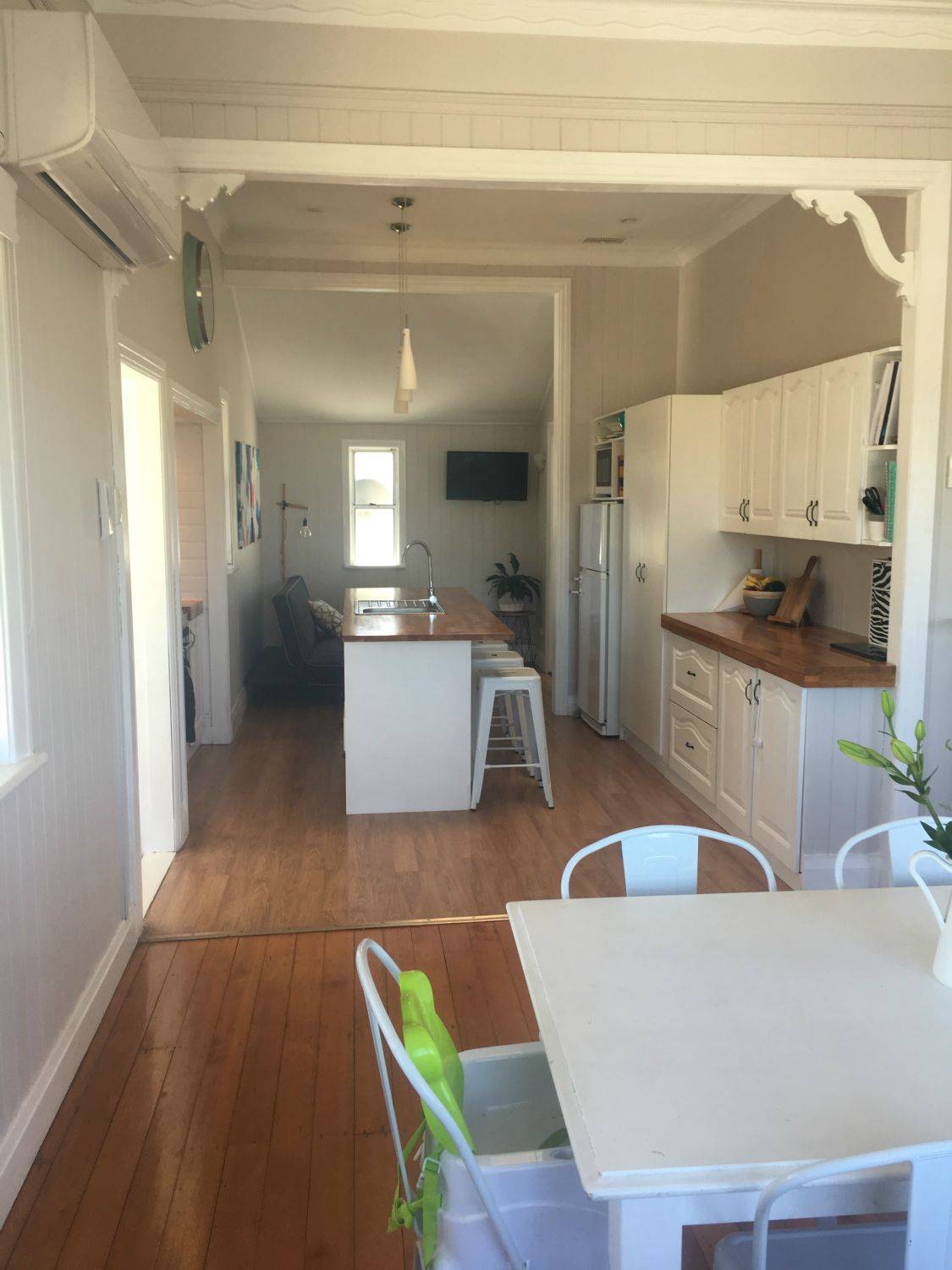 This beautifully renovated home is well worth a look. Whilst the original features of the home have been retained it has been modernised for today’s living. Large lounge and dining room with air-conditioning, fans and polished floors throughout. There are 3 good sized bedrooms with built-ins in 2 bedrooms. The kitchen is lovely and has a central work bench with dishwasher and breakfast bar, 6 burner gas cooker and plenty of cupboards and bench space. To the side of the kitchen is another TV room for the kids. The fully fenced yard is also fenced to the back yard and has plenty of room for the kids to play watching them from the covered paved pergola area. Underneath the house is fully concreted and lockable and ideal for storage. A double tandem carport completes the picture. This is certainly one of the nicer homes on the rental mar-ket. Close to Ipswich North School, Riverlink and bus at door.