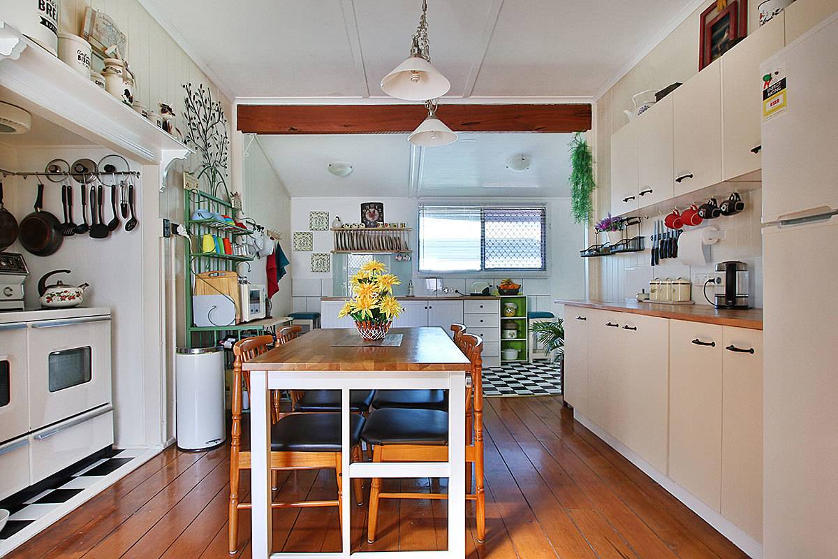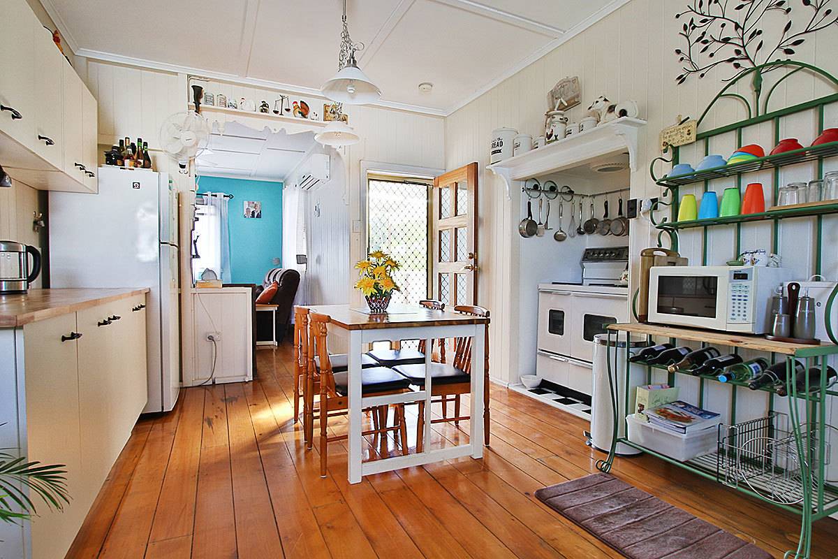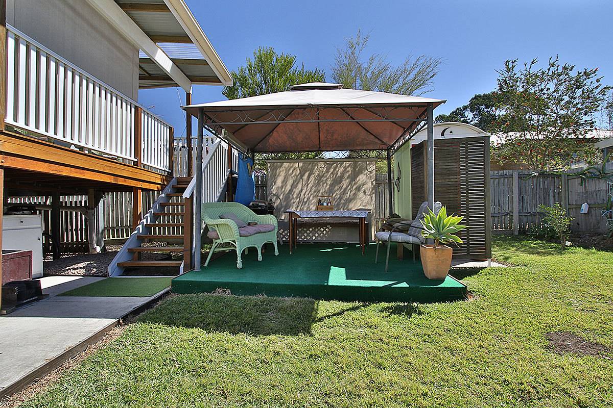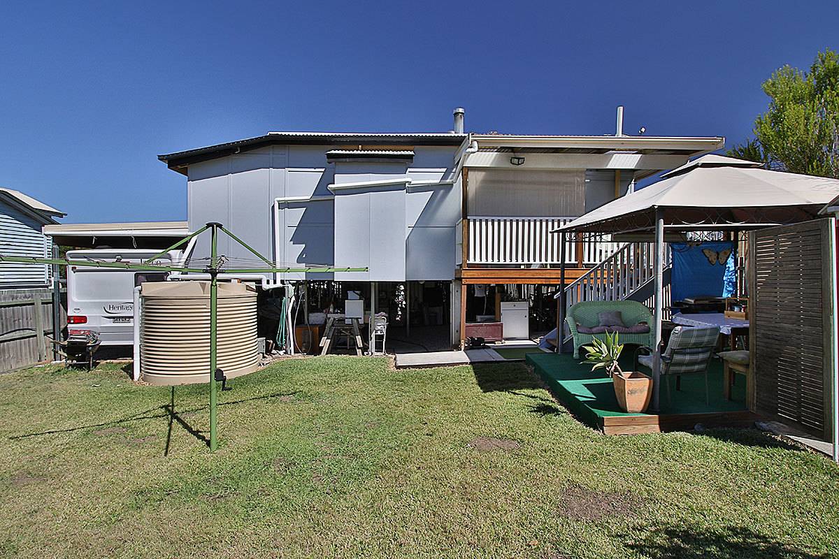 The underneath the house is very usable and has a garden shed and plenty of storage.  The area has been gravelled for neatness and easy of storage.  The property has been restumped, has a water tank installed and fully fenced.  There is a double carport high enough for the caravan to be under cover.