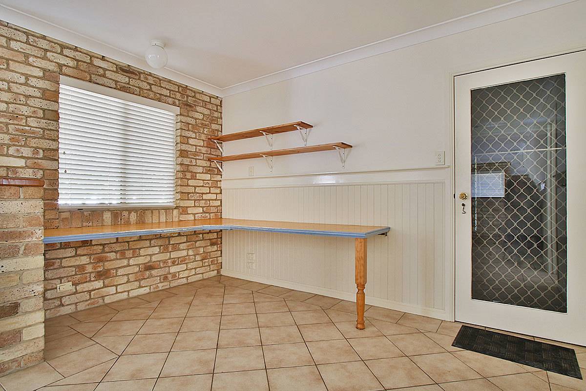 This is not a stock standard low set brick – featuring a large open plan living area with airconditioning and fans, plus a private study nook  to fit 3 work stations.   An on top of this there is a formal lounge.