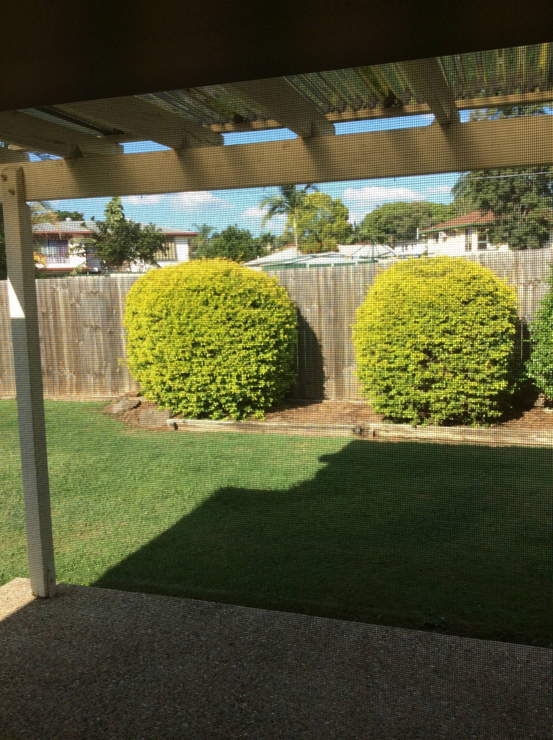 Outside is a double lock up garage and a covered entertainment area.  Very nice fenced flat yard and great location for shops, schools, buses and highway access