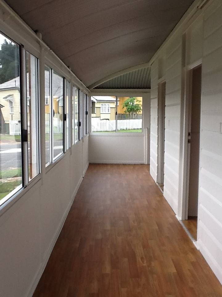 Highset 2 bedroom unit complete with wrap around sleepout.  Vinyl floor coverings throughout, with a nice sized kitchen, fans in lounge room and both bedrooms.  The property is fully fenced.  Walking distance to Ipswich CBD, bus stop at the top of the street.  Off street parking.