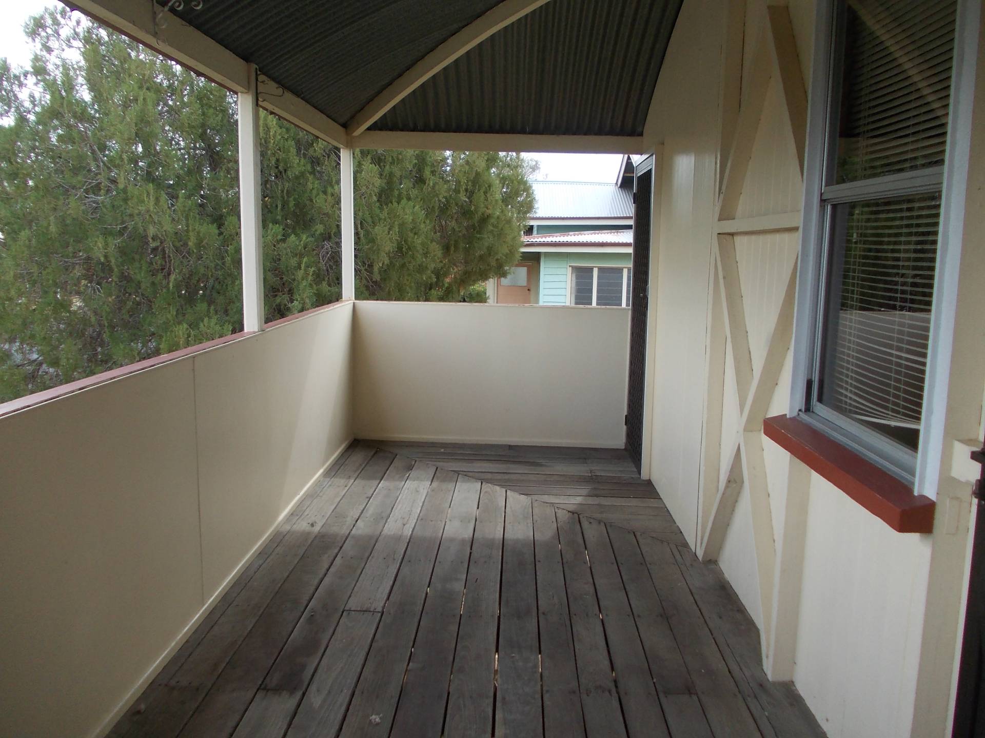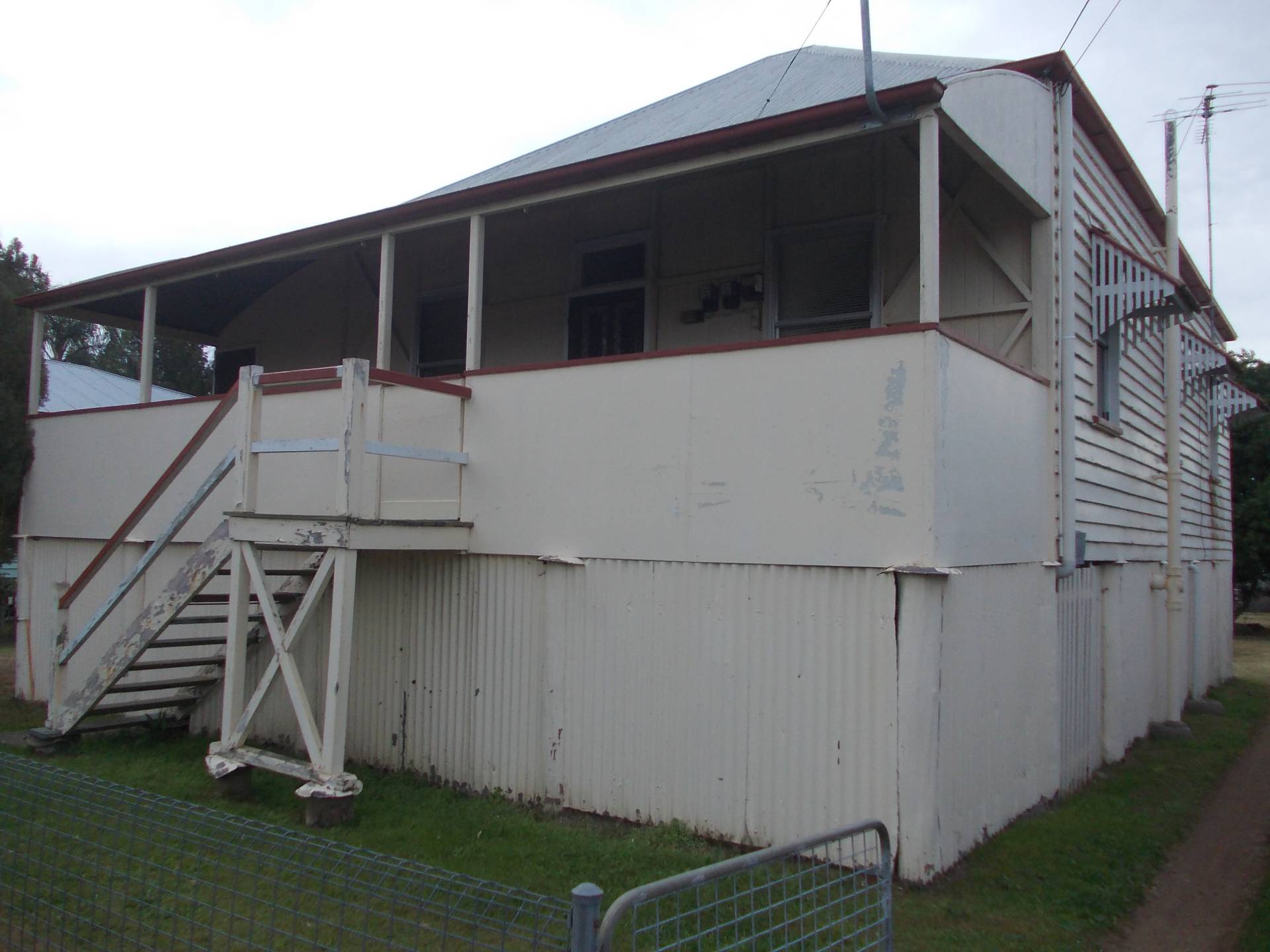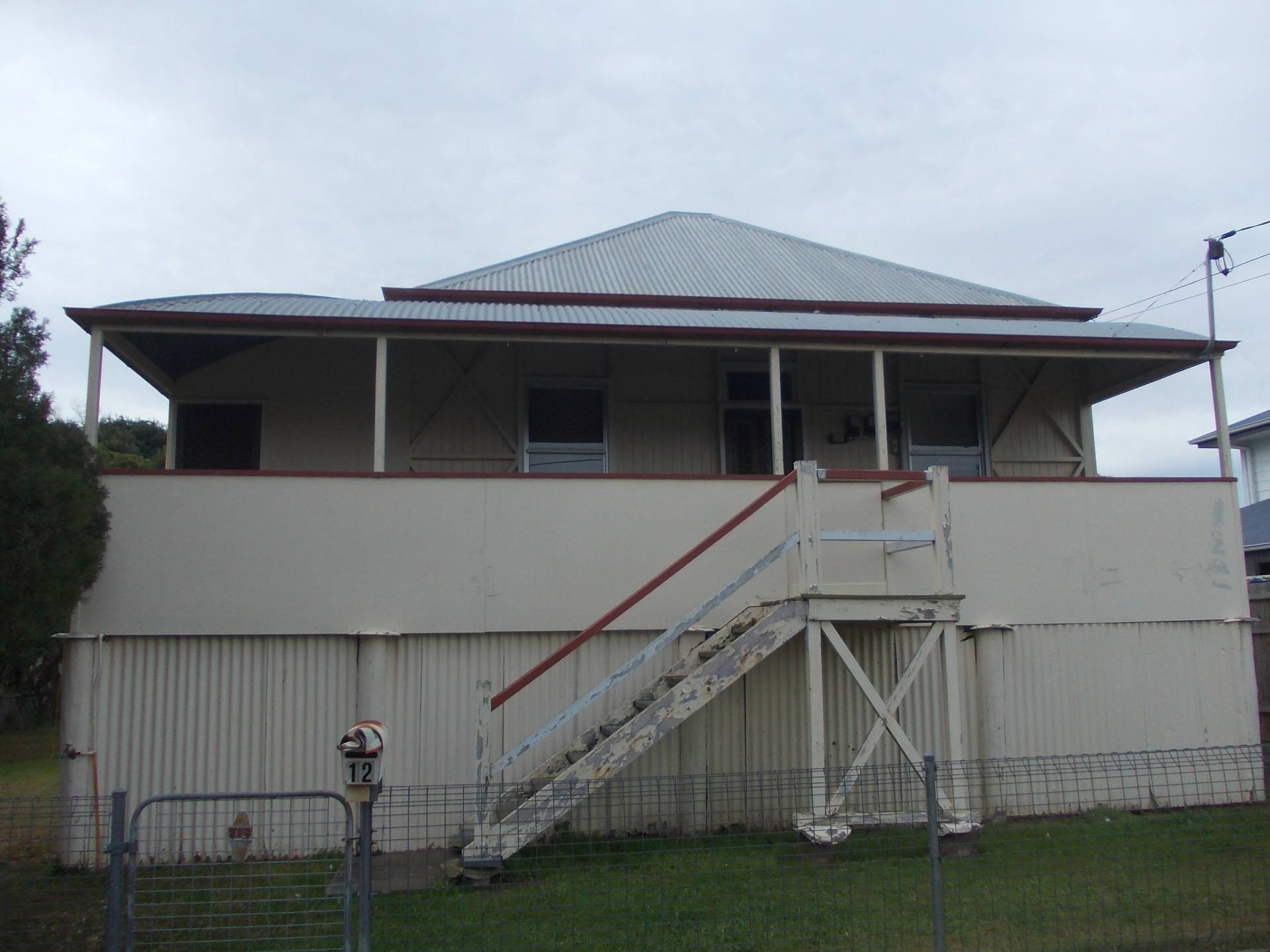 High set 3 bedroom home with large wrap around enclosed verandah, front porch, partley fenced.  Large back yard.  Close to bus stop, primary school and golf course- walking distance to shops.