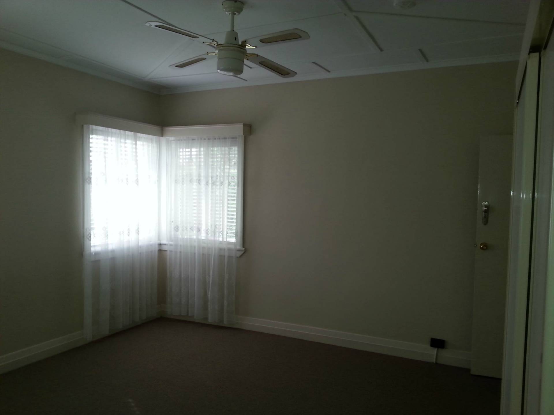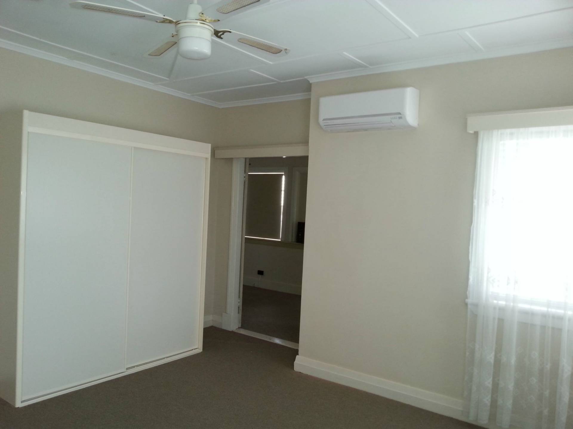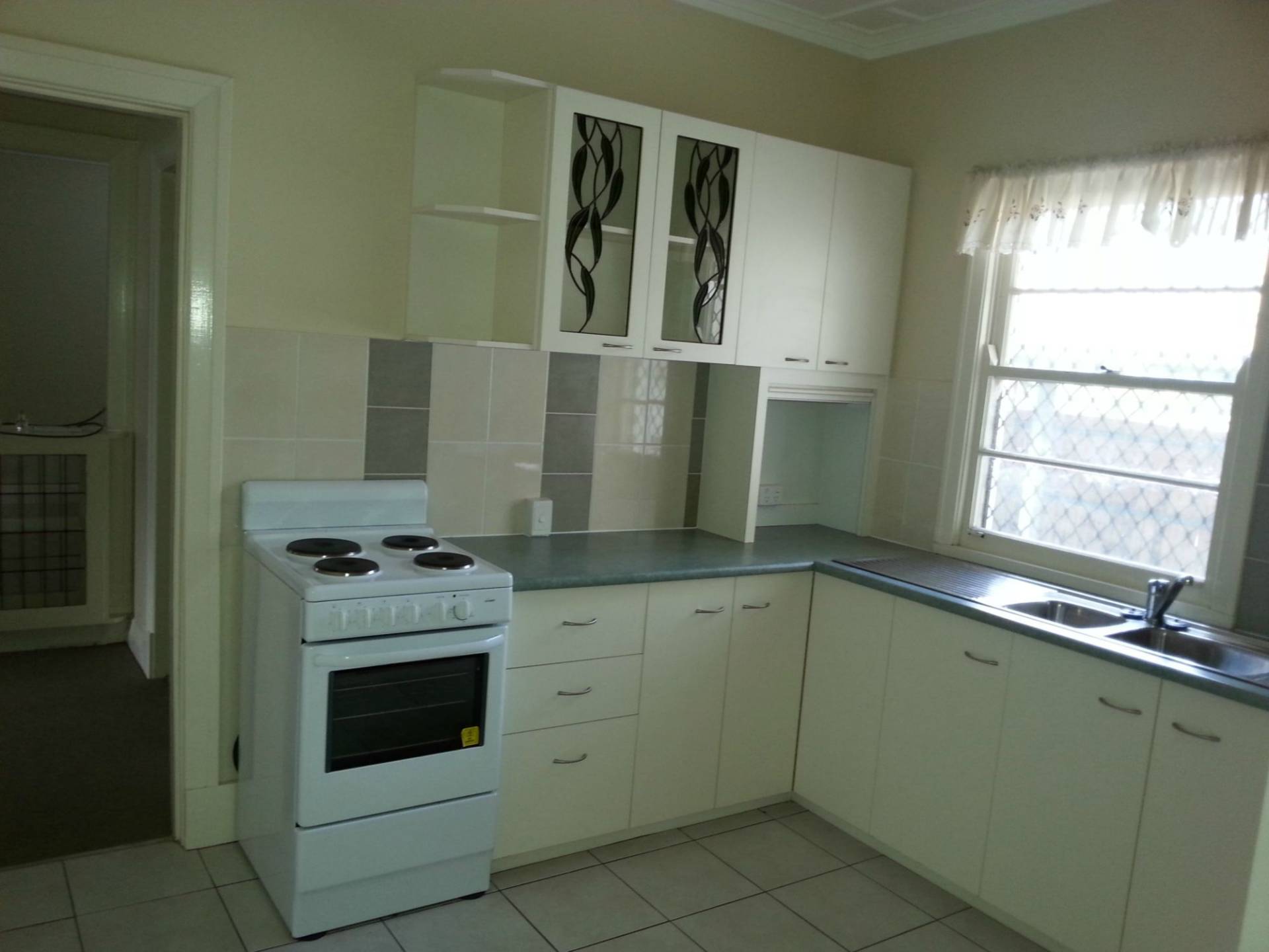 This Art Deco house in small unit complex within easy walking distance to Booval train station and Booval Fair Shopping Centre. This house has two bedroom plus study and a large air conditioned sleep out, both bedrooms have fans. Main bedroom is large with robes and air conditioning. This house has street frontage and a shared driveway with the two townhouses. It has a single carport plus visitor’s carpark. The kitchen is large enough to fit a dining table. The lounge and dining room are on the large side. Features include in-house security and deadlocks.Yard maintenance.  You will love this house the moment you walk in the front door.