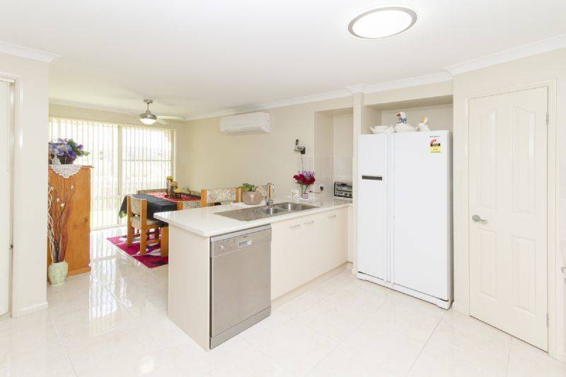 Open plan tiled living areas is quite spacious and features airconditioning, fans and security screens.  The kitchen has a dishwasher and a good sized pantry and plenty of bench space.  Down the centrail hallway has 3 built in bedrooms with ceiling fans plus a linen cupboard.  The master bedroom has a walk in robe and an ensuite.  The laundry is hidden away behind sliding doors and there is a single garage.  The yard is fully fenced with some yard for play, plus a play ground just up the road for convenience.