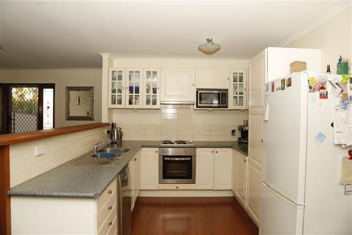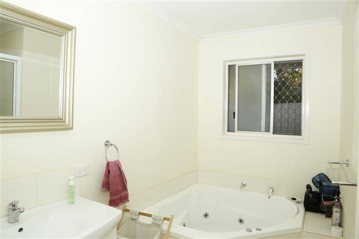 The living area is open plan with large A/C and the kitchen is stylish with stainless steel appliances including a dishwasher. There are 3 generous bedrooms all of which have ceiling fans and built ins. The bathroom is modern with corner spa bath and huge double shower.