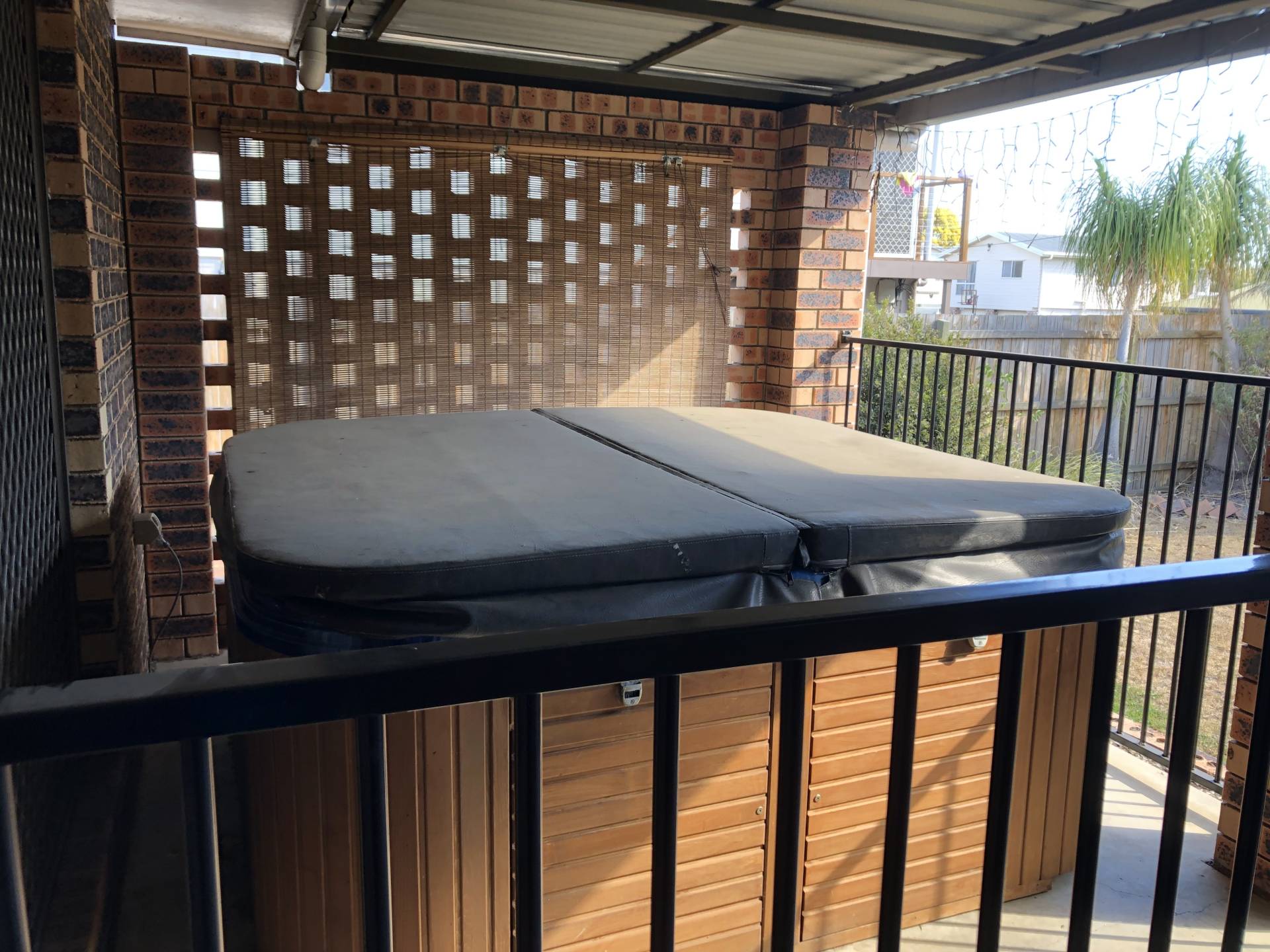 The spa is located off the lounge room - so a perfect spot to sit in the coming summer and still manage to watch Netflix inside.  The yard is fully fenced with a garden shed.