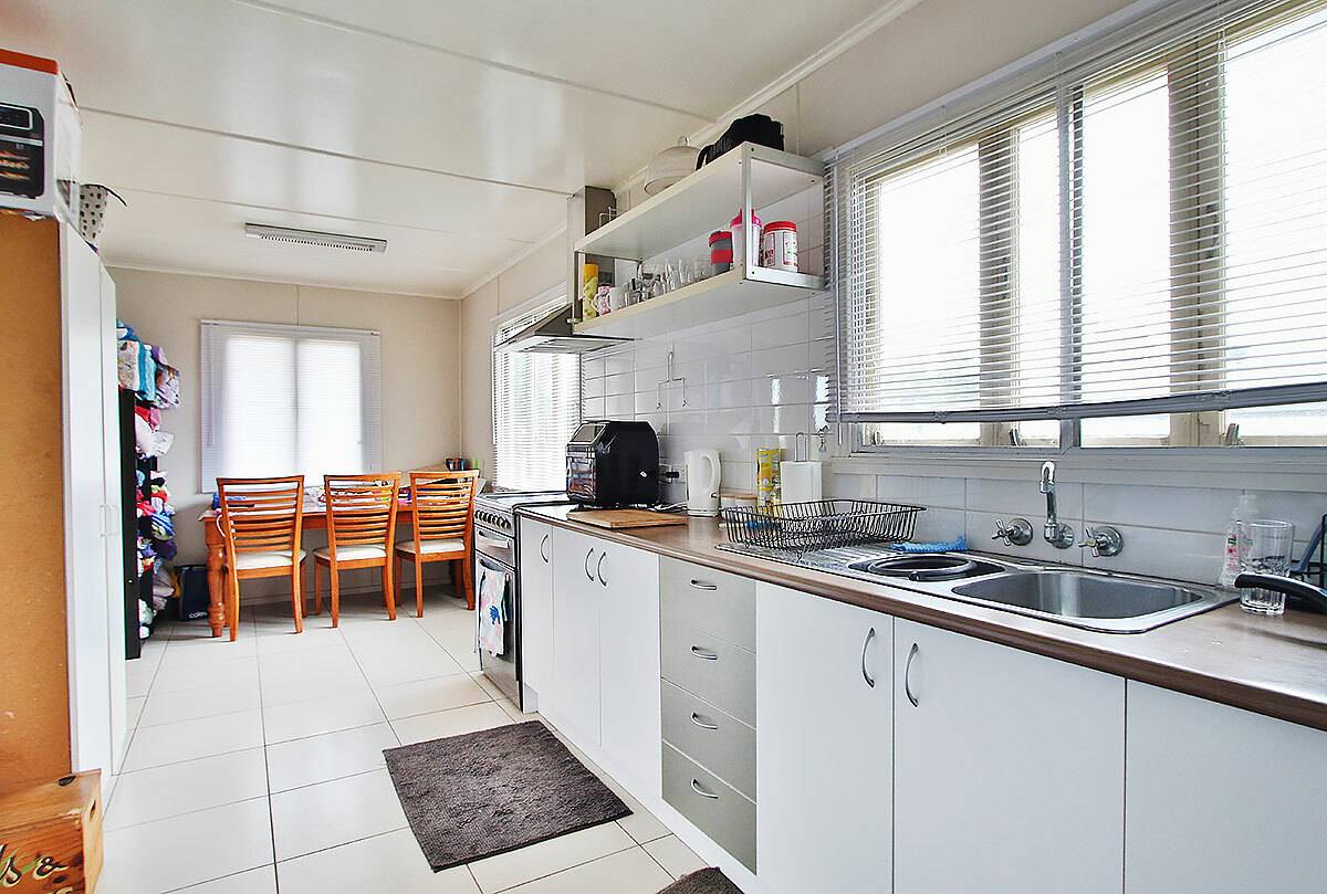 The galley style kitchen provides good bench and cupboard space and also provides a stand alone pantry for storage.  Benches with a timber look top and stainless steel oven with separate grill gives the kitchen a very modern flair.  With the dining room located at the end of the kitchen there is great natural light and space for the family meals.