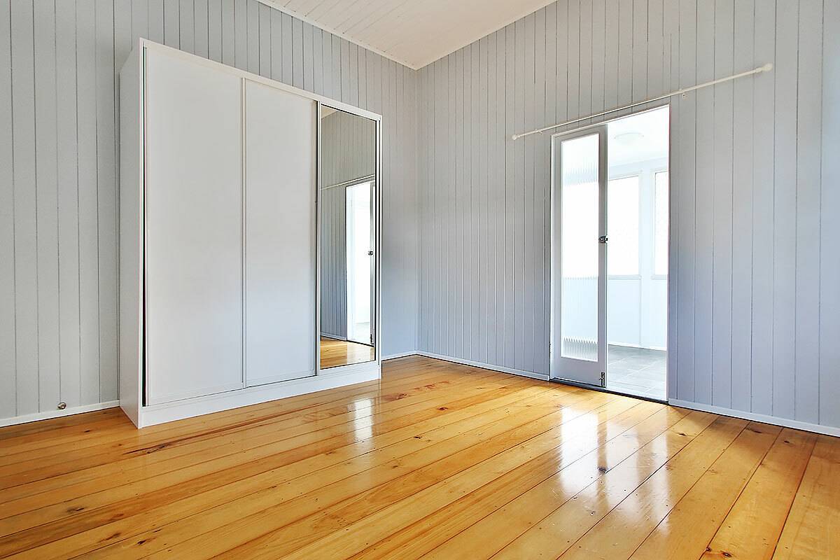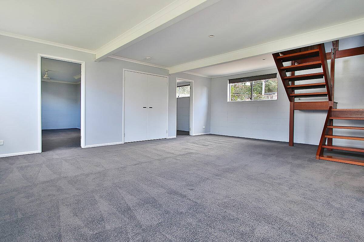 A second bedroom upstairs is a queen size room with double robe and ceiling fan.