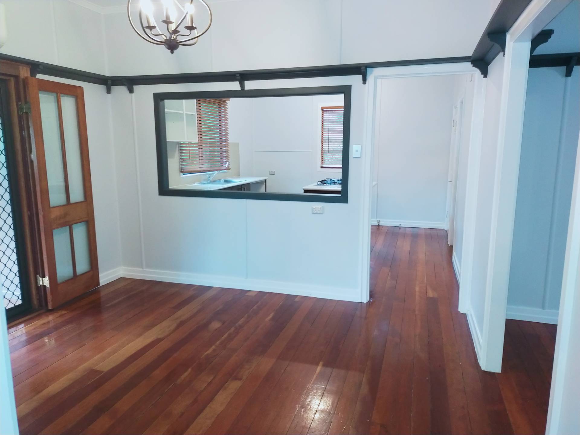 Step inside the entry foyer and you enter the lounge room with polished floors throughout and fans.  The large air-conditioning unit also cools the living and kitchen areas.  A separate dining room next to the kitchen makes meals a breeze.
