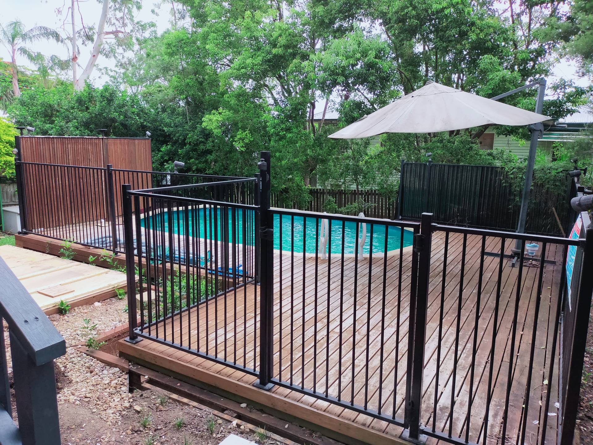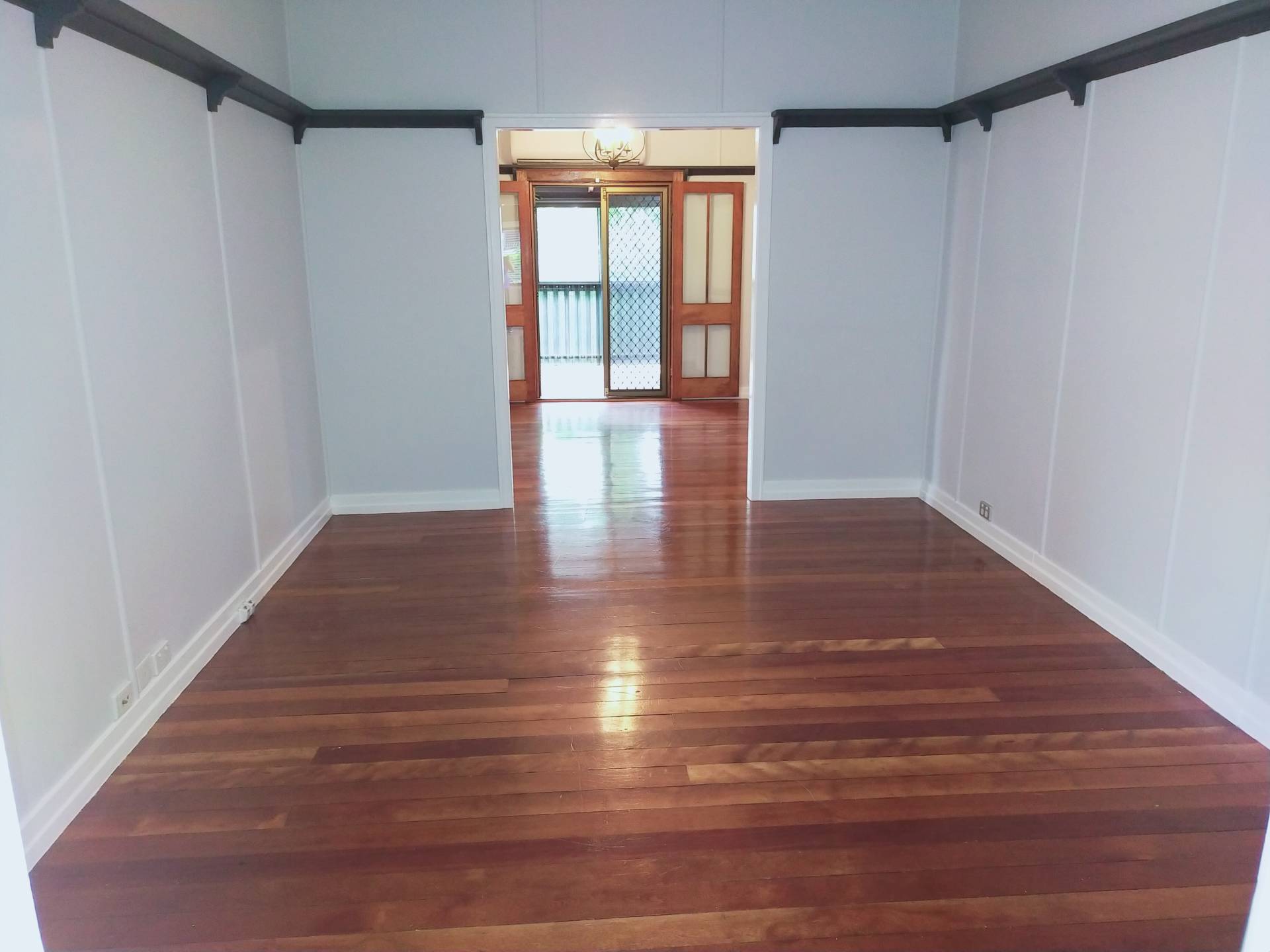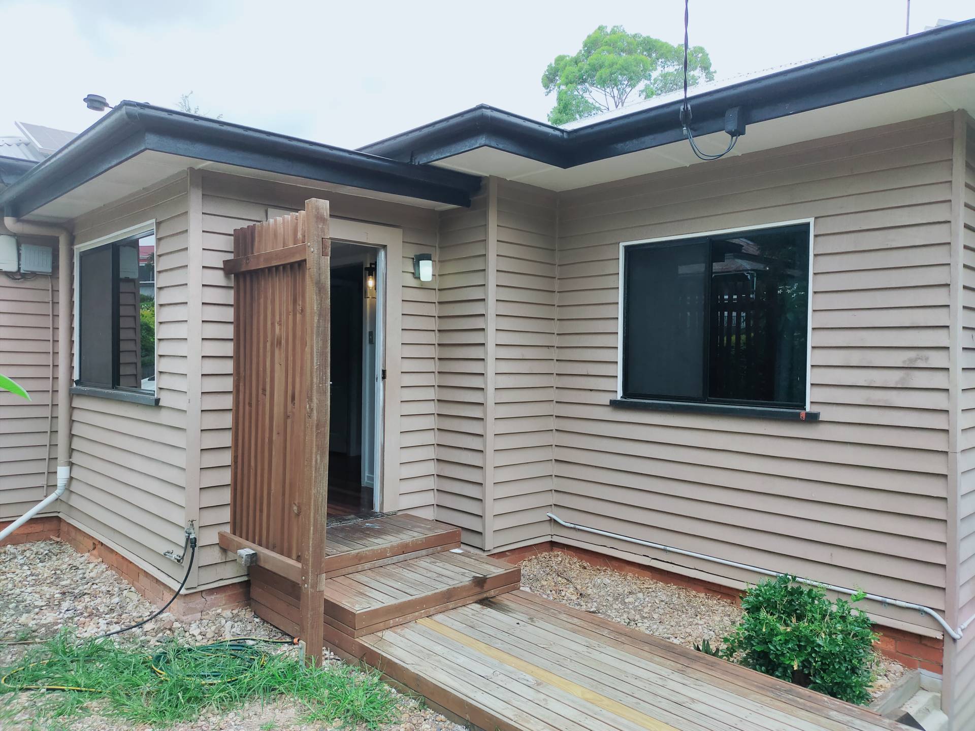 Outside the double doors is a screened entertainment deck, perfect for a morning cuppa.