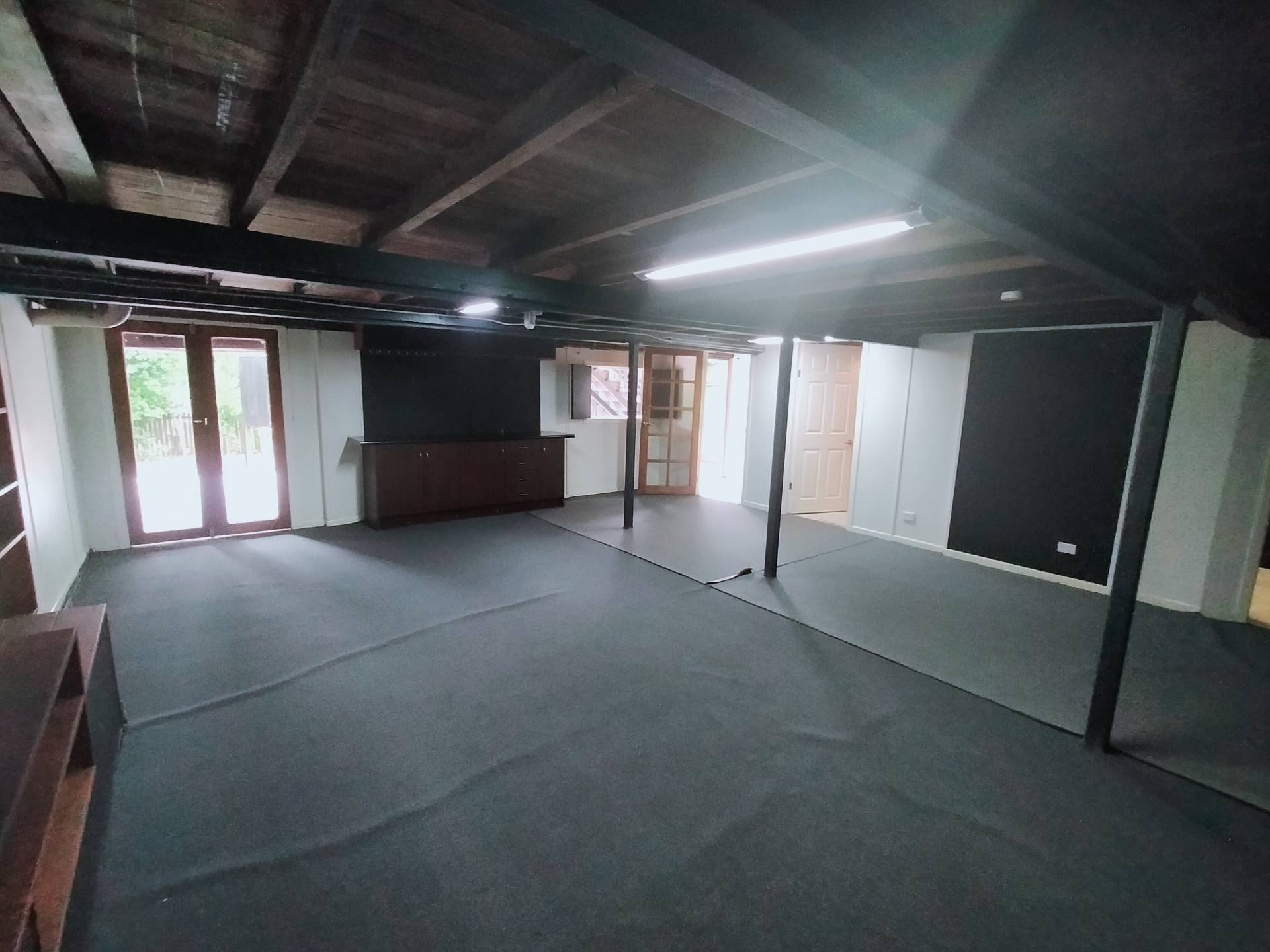 Downstairs is another entertainment area, complete with sink and makes a great spot when using the pool and the BBQ on these hot summer days.  A large rumpus room with built in cabinetry with seating and TV points is a great spot for the kids to hang out, or just an extension of the outdoor entertainment area.  Adjoining this room is a separate change and storage room for the pool guests, plus another storage room.  A toilet also services this area.  This area is not able to be used as a sleeping area.