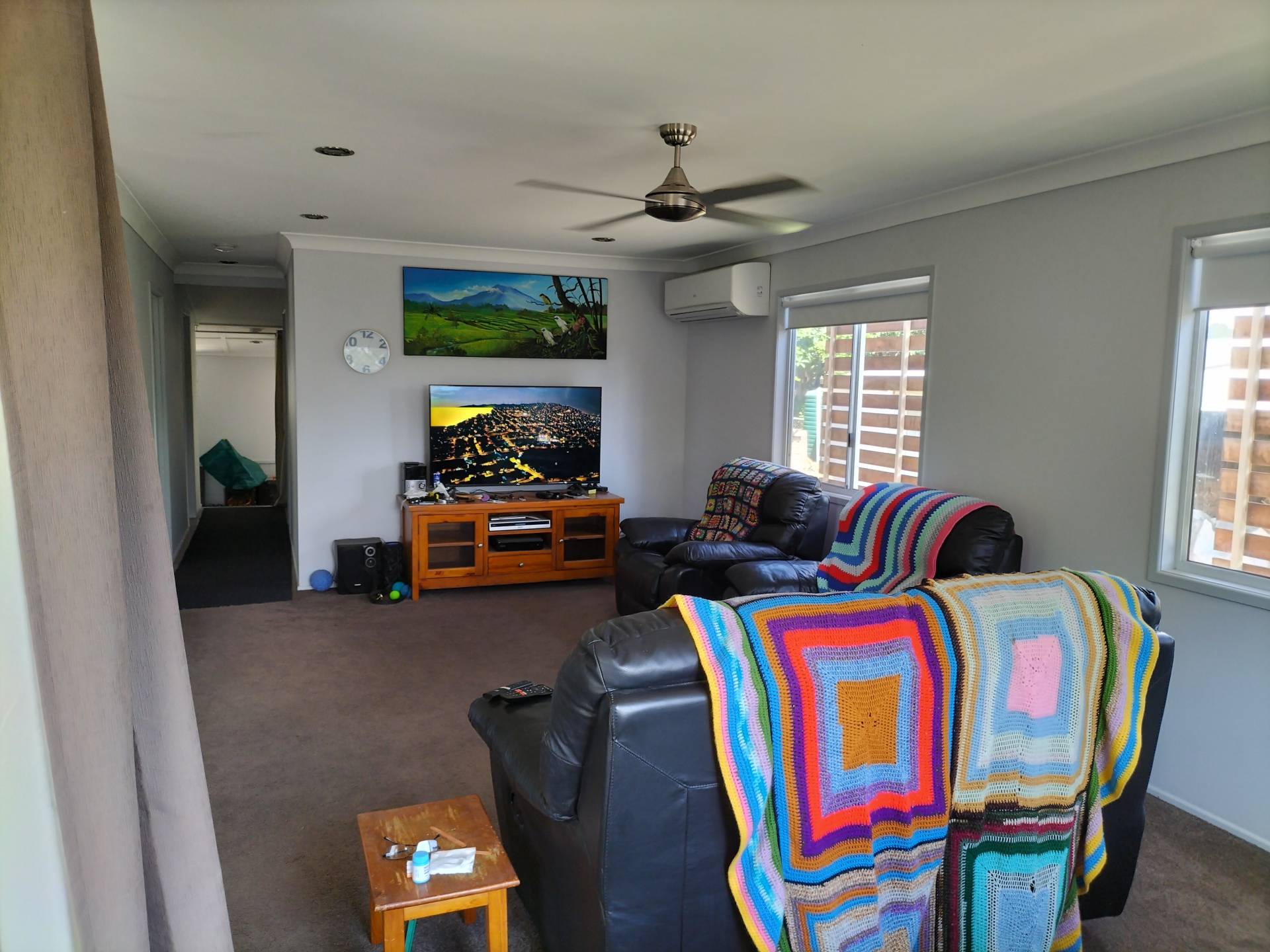 3 good sized bedrooms, the master with built ins, airconditioning and fan.  Bedroom 2 has airconditioning, fan and a built in robe and Bedroom 3 includes a fan and built in.