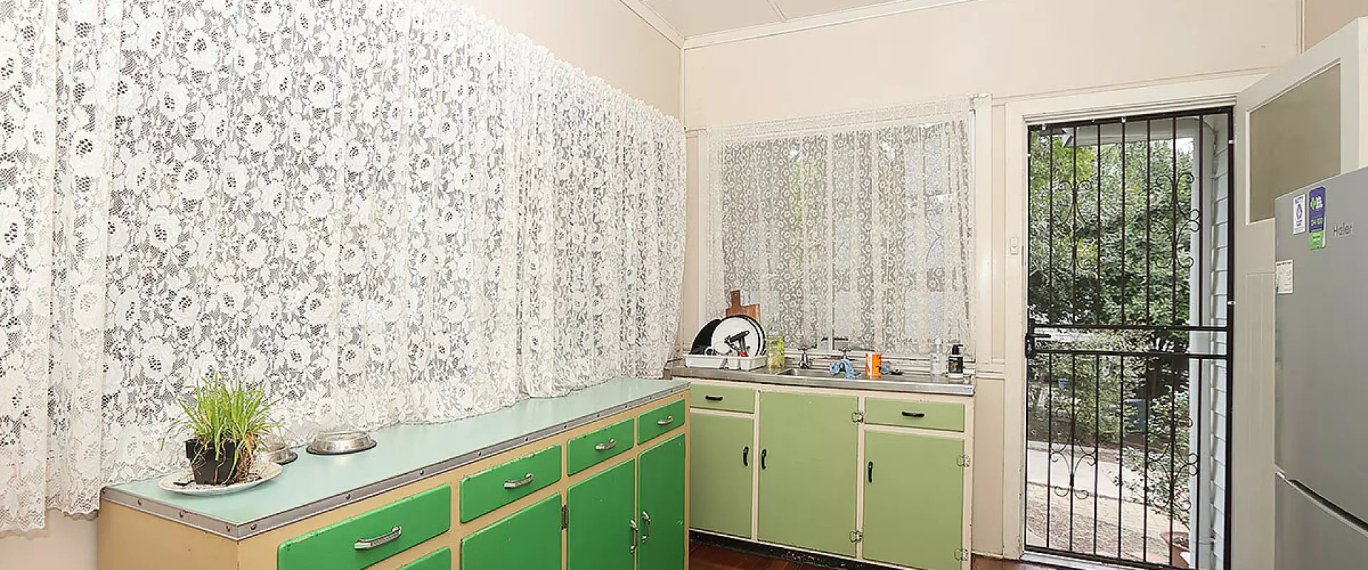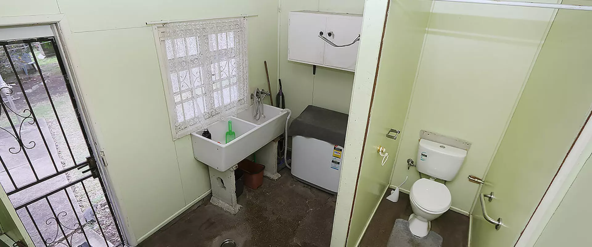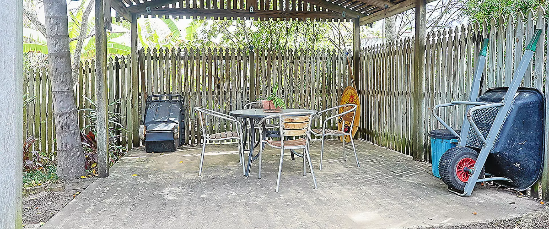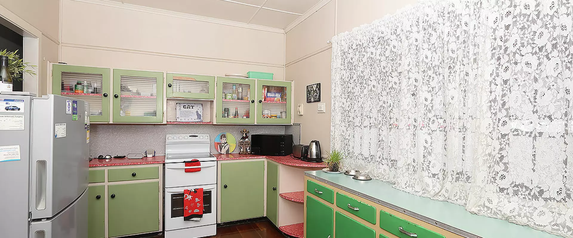 The retro kitchen is in great condition and has plenty of bench and cupboard space and has a new stove recently installed.  Side door also allows the breeze to flow through.