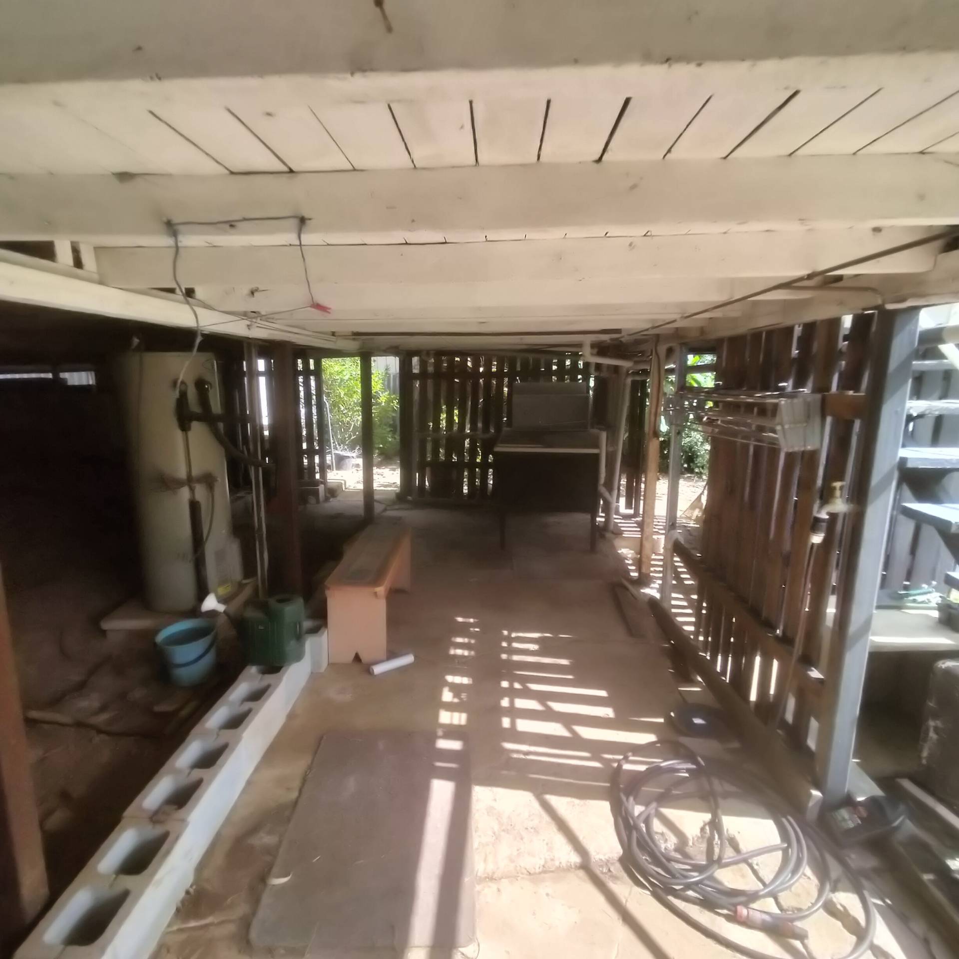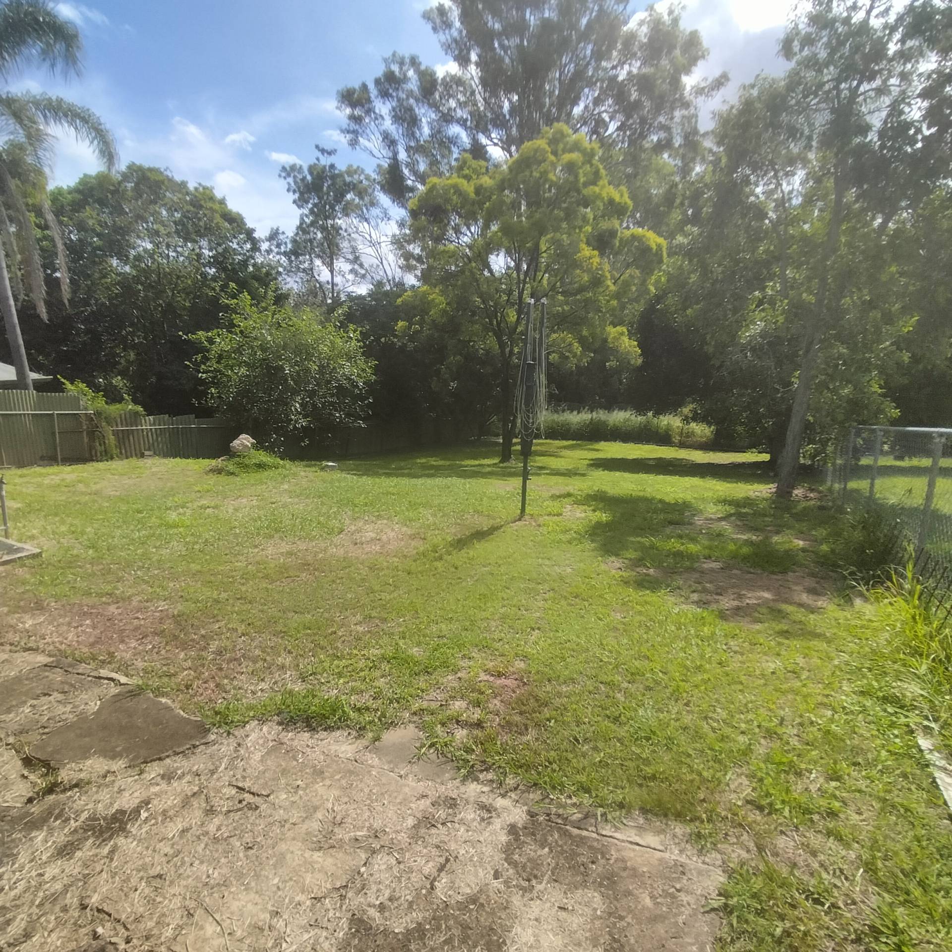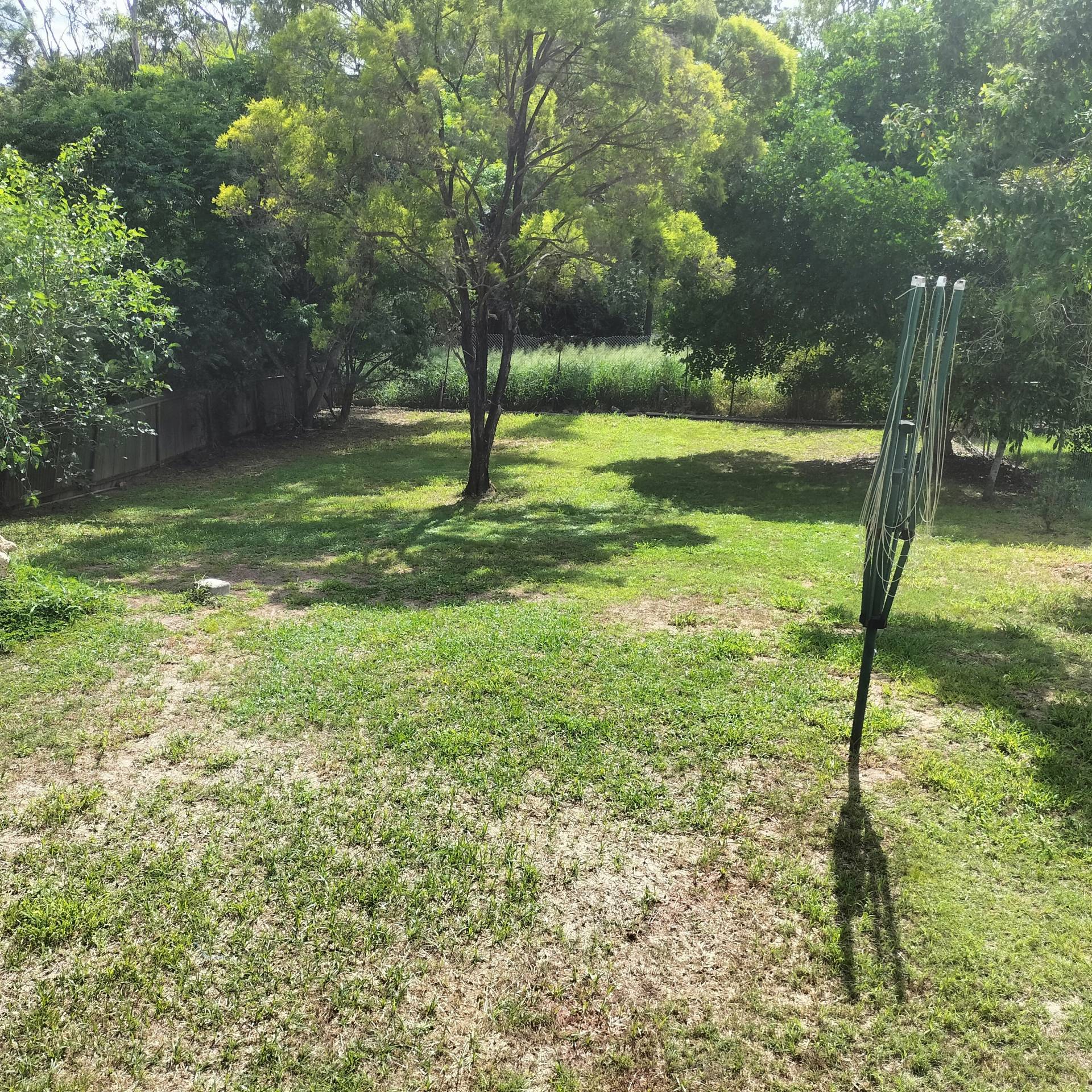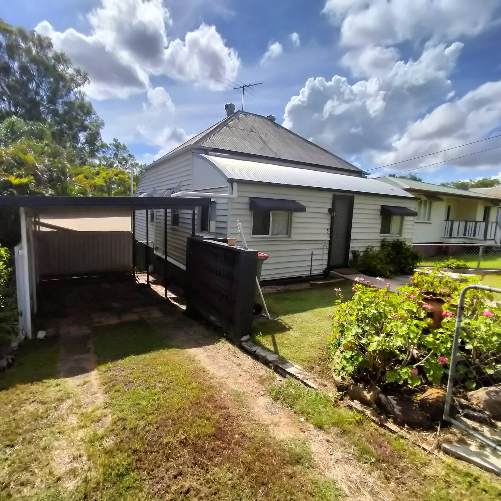 A big fully fenced back yard and under house storage with laundry, plus a carport for the car.