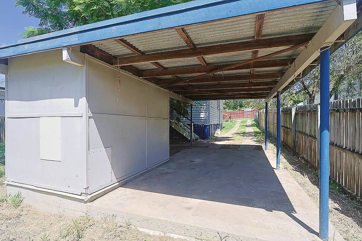 Outside is fenced with a single carport and a handy garden shed.  The laundry is also external.