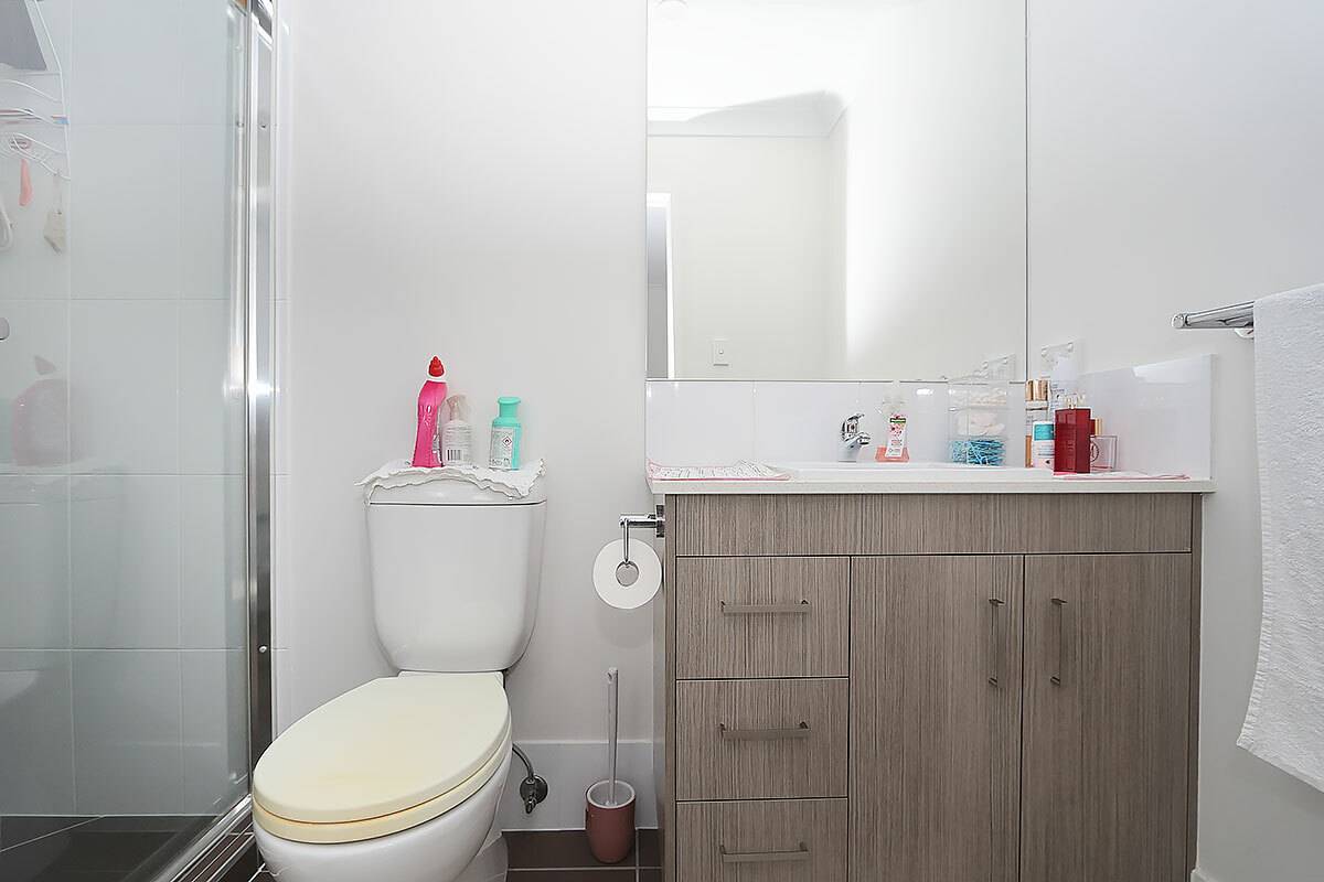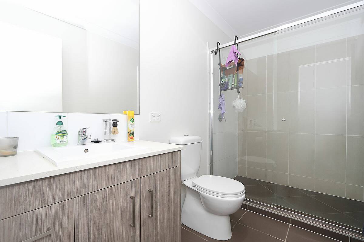 A spacious bedroom with built in robes and ceiling fan.  The bathroom has a shower only, but what a shower!!  Great walk in shower and a good sized vanity.