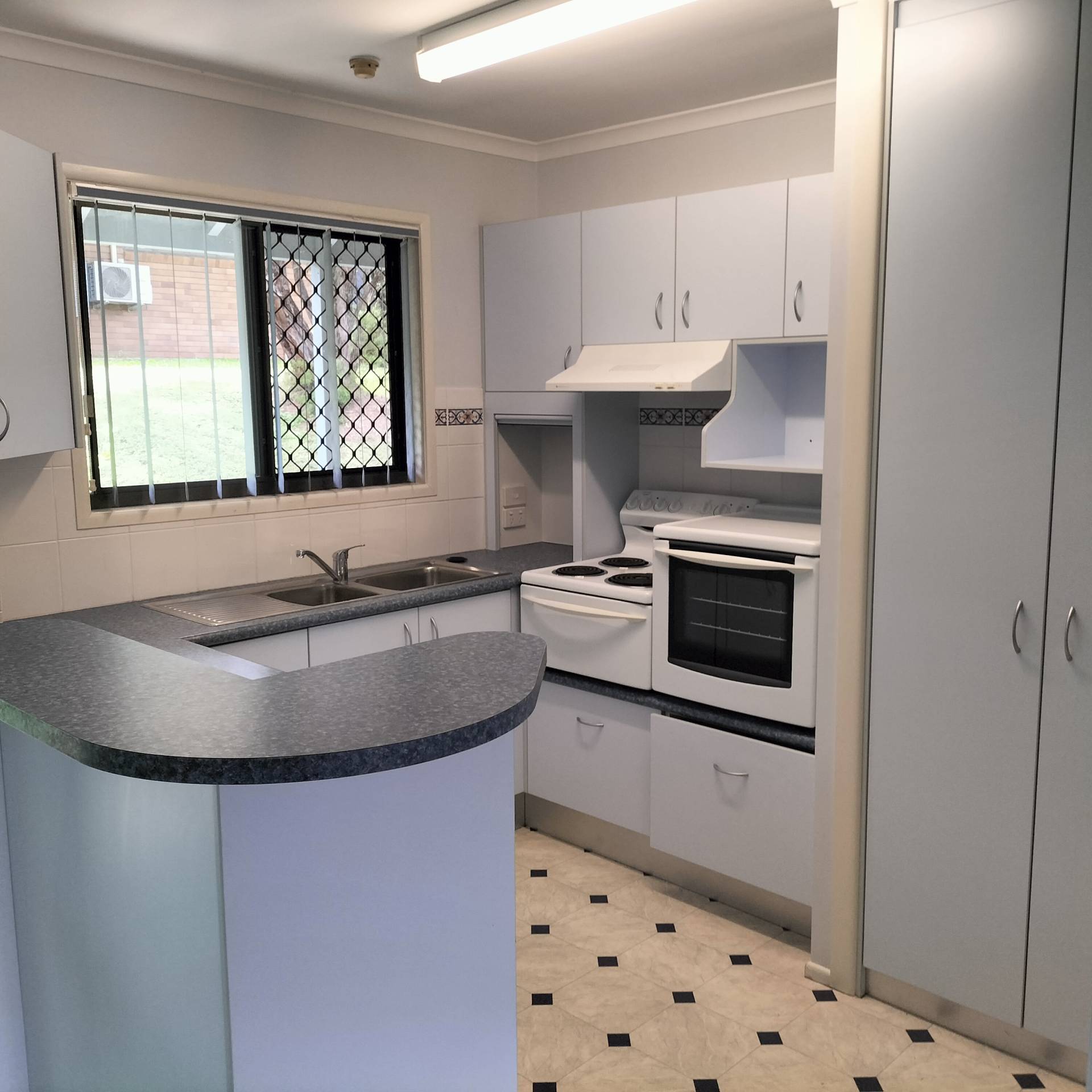 The kitchen is compact but offers plenty of bench and cupboard space.  An electric side by side stove/oven makes for easy cooking and a good sized pantry.  Enough bench and cupboard space to suit the gourmet cook.