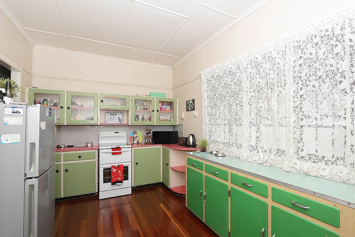 The property features a large airconditioned lounge room with adjoining dining room.  The retro kitchen is in fabulous condition and has good cupboard and bench space.
