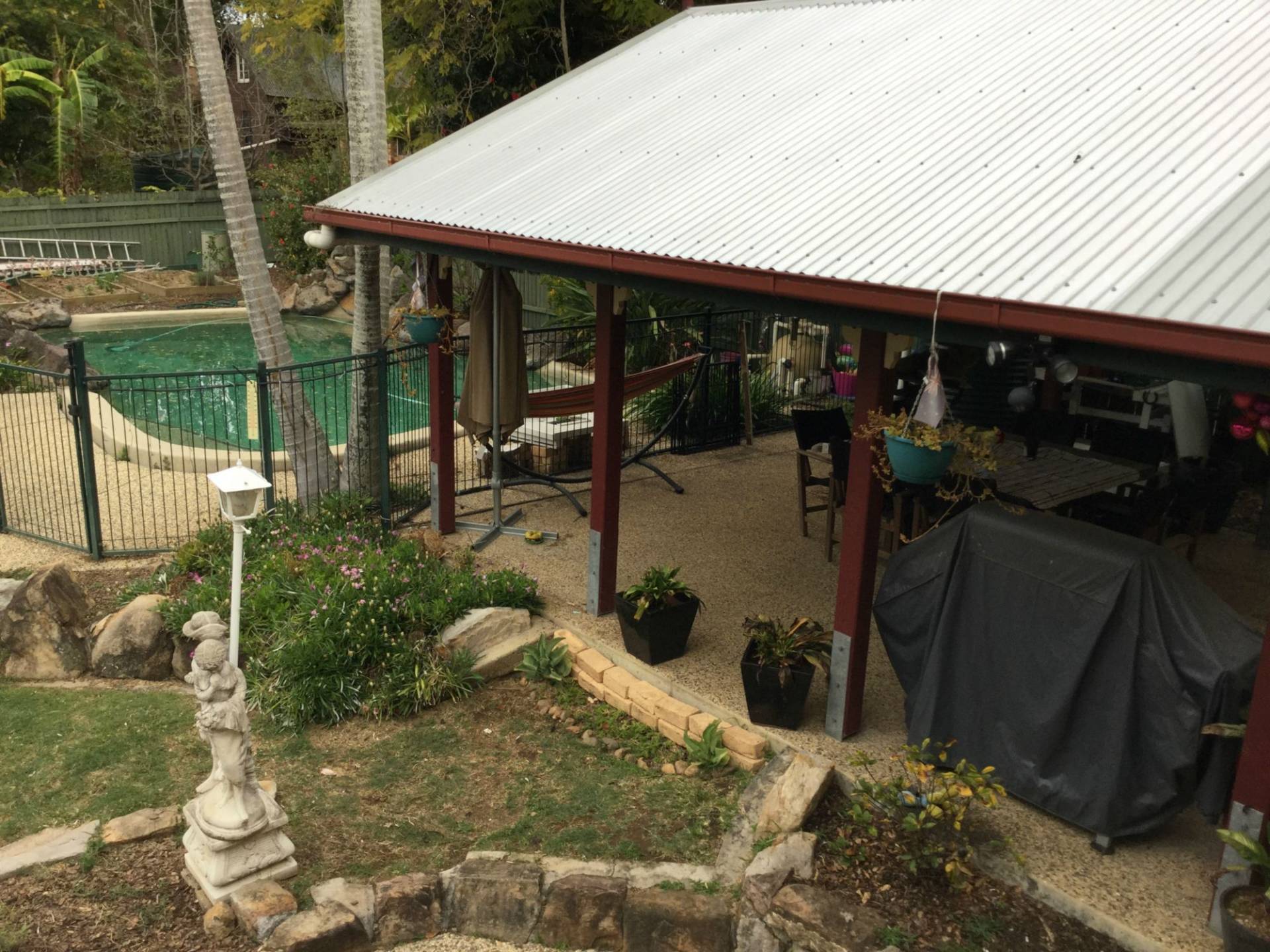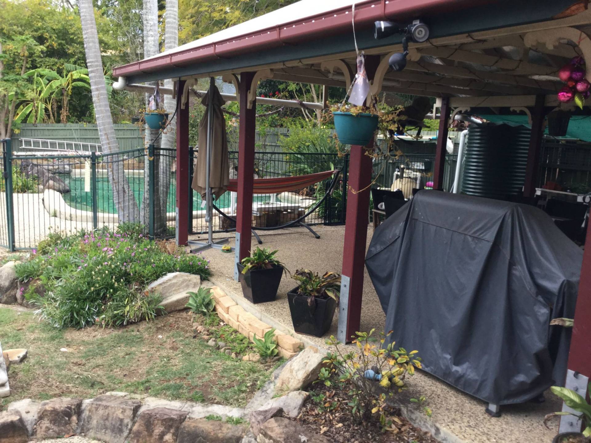 - The covered entertainment area overlooks the salt water swimming pool for the long hot summer ahead