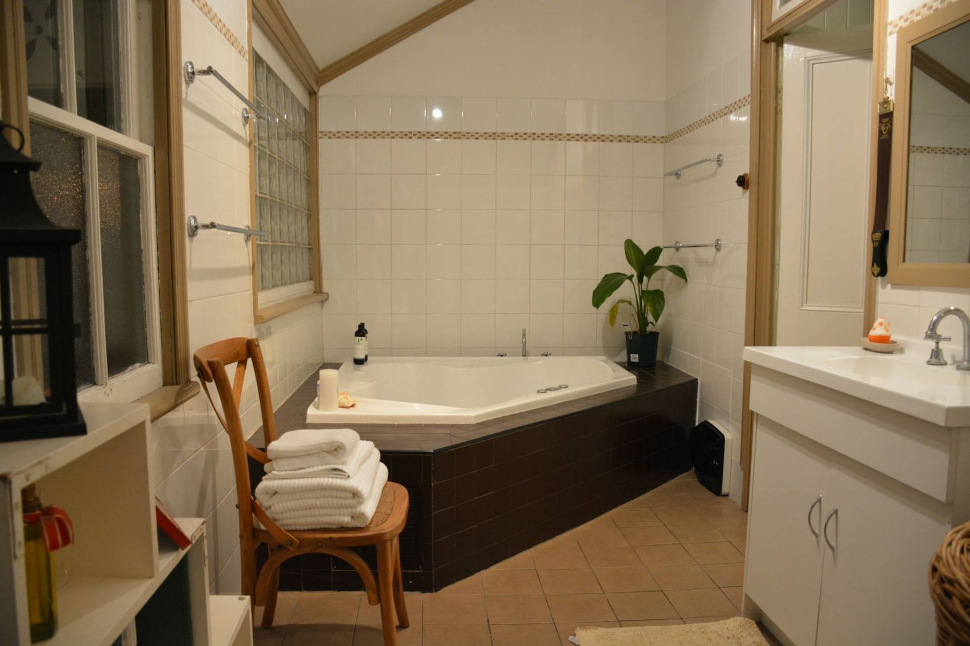 The lounge room has a reverse cycle air conditioner plus a wood burning fire place and French doors that lead onto the veranda. The main bedroom features built-ins and is still large enough to accommodate extra furniture. The second bedroom also has ample room as well as French doors opening onto the verandah. The third bedroom features built-ins. There is a large family bathroom with separate shower and wonderfully large corner spa bath. The property also has a second separate toilet.