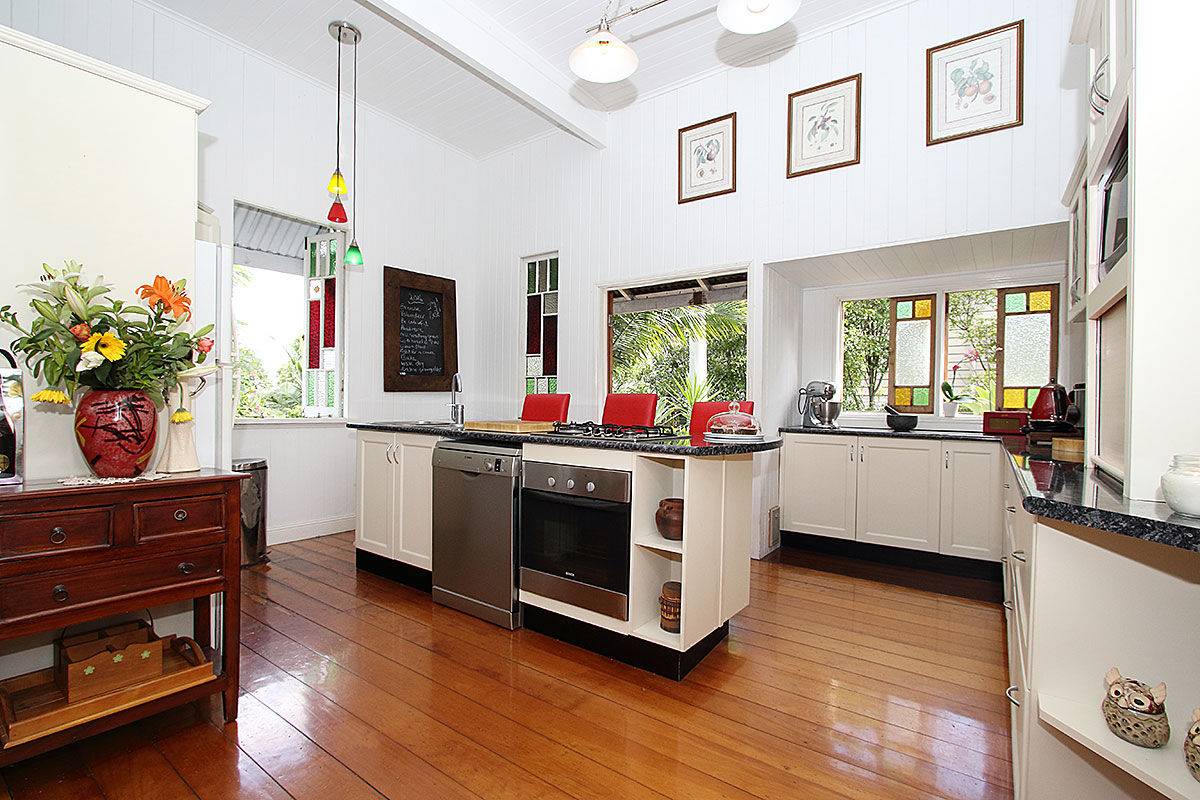 The kitchen is fully renovated and has ample bench space and cupboards as well as a large corner pantry. It features a gas cooktop, electric oven, and double sink. This area is light and bright and makes the perfect cooking and entertaining space. Leading off of the kitchen is a deck area to sit and enjoy breakfast and outdoor cooking. The home has 2 bathrooms, the main is fully renovated and features a spa bath, separate shower and beautifully restored old kitchen recess as the linen storage area. The 3rd bedroom is large enough to accommodate a Queen size bed and the 4th bedroom is only slightly smaller.