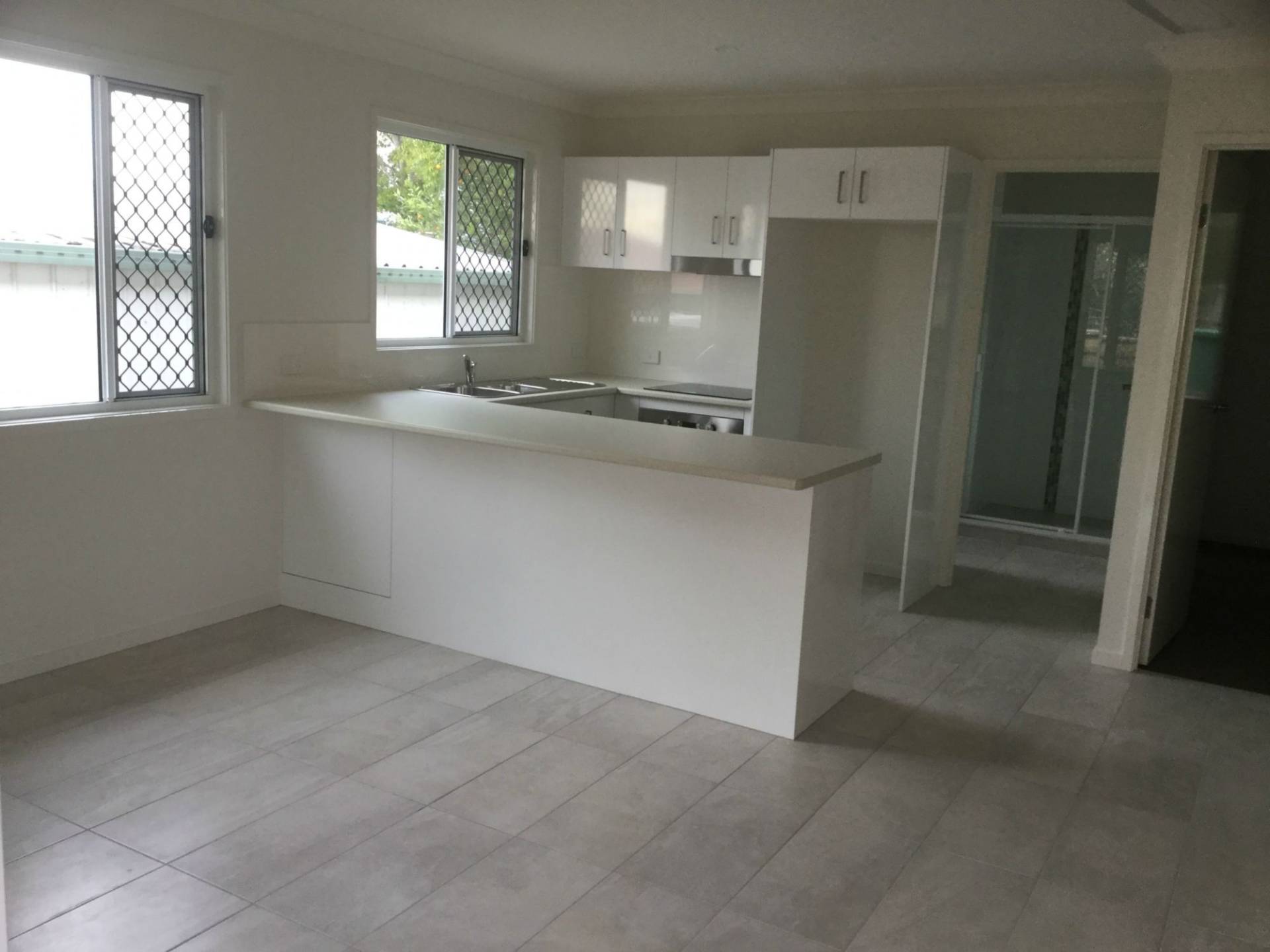 Brand new 1 bedroom granny flat with separate street access, excellent large front deck, good sized lounge and dining room, good sized bedroom with built in robes, large bathroom including laundry, double lock up shed, easy care yard (no mowing) air conditioned, ceiling fans and full security. First to see will take. Quiet location with easy access to Brisbane Road, Highways, Shopping and bus.