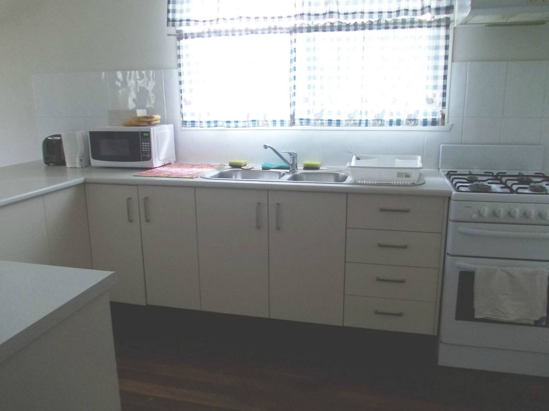 The modern kitchen has lots of cupboard and bench space, the home has polished floors throughout plus security screens. The living area is air conditioned.
