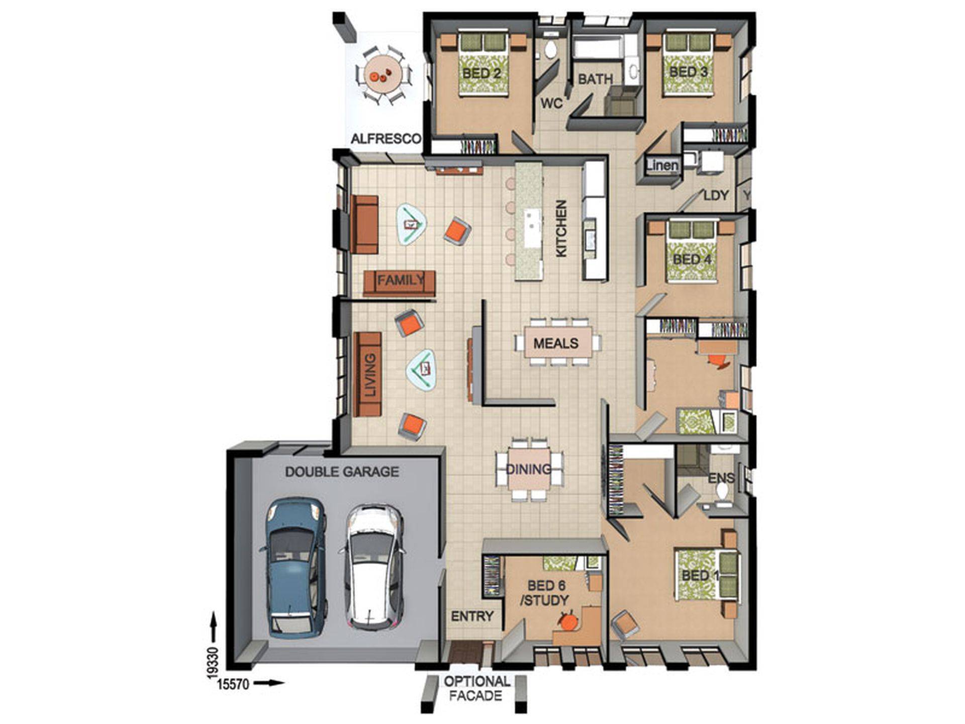 This is no ordinary home it is a fabulous Family home and features 6 Bedrooms all with built in robes. The oversized master Bedroom features a walk in Robe and Ensuite. There are three large Living areas plus a separate Dining area. All of the living space is tiled for easy care, the spaces are large enough for a formal lounge and formal Dining room plus a family room and office space. Air conditioning in family room and kitchen area. Ceiling fans. Security screens and door plus tinted windows.